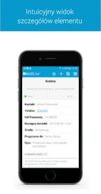 Wersja mobilna Baseline™ wspiera takie obszary jak: - rejestracja i nawiązywanie połączeń głosowych w CRM - zarządzanie procesem sprzedażowym - zarządzanie projektami i zadaniami - elektroniczny obieg dokumentów - finanse (koszty i sprzedaż) - raportowanie