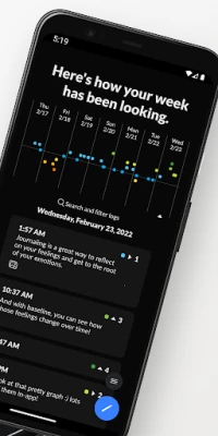 baseline is designed not just to help you write and reflect more often, but also to help you understand more about yourself and your mood over time. You’ll get mental health surveys and reviews each week, and we have beautiful visualizations across our app that are designed to help you better see what you’re going through and when you’re struggling.