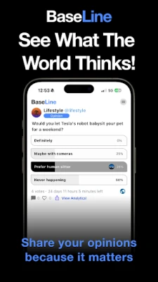 Whether you're curious about the opinions of others or eager to share your own, Baseline Polls makes it easy and fun to stay connected to the pulse of society. Download now and See how the world thinks!"