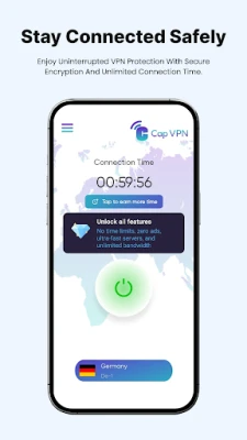 Cap VPN is a free and unlimited VPN for Android that gives you fast, stable servers and private browsing in one tap. Protect your data on Wi-Fi, stream without buffering, play with lower ping, and access your favorite apps and websites securely from anywhere.