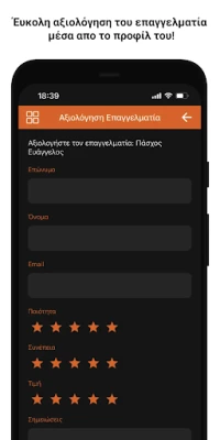 3. Αξιολόγηση επαγγελματία - πες τη γνώμη σου για τον επαγγελματία χτίζοντας έτσι το προφίλ του και βοηθώντας παράλληλα τους άλλους χρήστες στην αναζήτησή τους