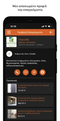 2. Επιλογή επαγγελματία με δυνατότητα κλήσης ή αποστολής SMS απευθείας μέσω της εφαρμογής