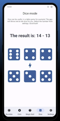 The main purpose of the app is to provide a random choice in different ways. The app contains some basic personalization options and an introduction, plus some new resources like animated vector drawables and a basic Material You support. The design is a bit personal: it follows the Android guidelines, but not totally.