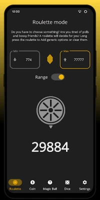 • Every tab in the bottom navigation bar contains a type of random choice. The available types are: