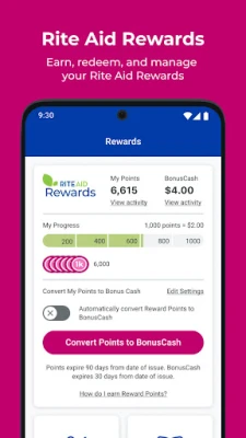 Manage your prescriptions, earn Rite Aid Rewards points and convert to BonusCash for more savings. The Rite Aid Pharmacy app is here to help you not just get healthy, but get thriving!